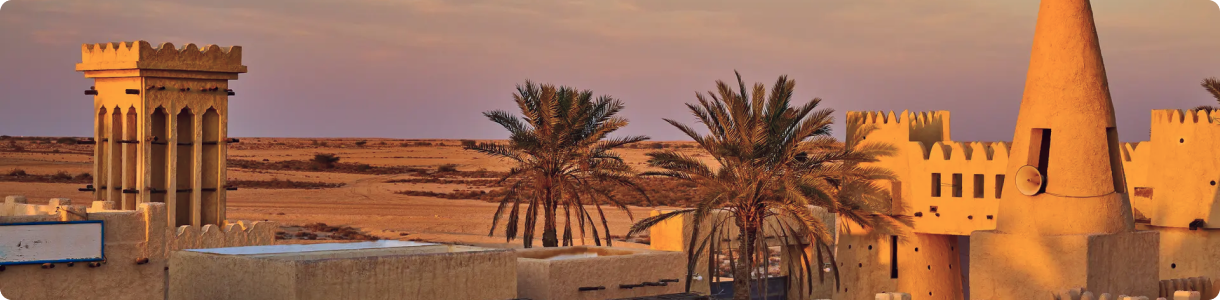Qatar is located on a peninsula that stretches 563 kilometers along the western coast of the Arabian Gulf. It borders Saudi Arabia to the south and is close to Bahrain, the United Arab Emirates, and Iran. Qatar is characterized by its flat, arid desert landscape and its sunny, dry climate year-round. Temperatures range from 17°C in winter to over 40°C in summer, with light and limited rainfall between October and March.
